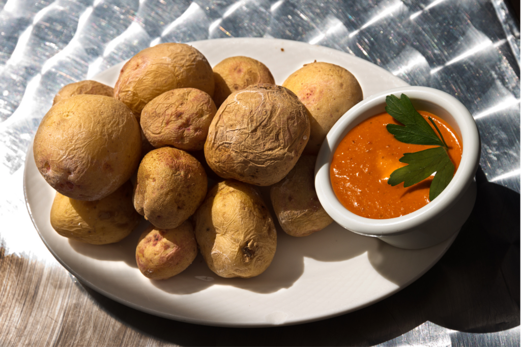 Ces petites pommes de terre ridées servies avec des sauces mojo piquantes sont un incontournable de la cuisine canarienne.